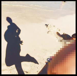 その海辺にて、第3子で膨れたお腹を撮影されてます。